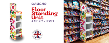 Custom PRINTED Cardboard Shop Floor Stand Display 4 Shelf Unit FSDU